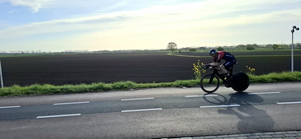 Tussen Elst en Bemmel een mooi parcours voor de tijdrit van Lingezegen. Kort maar krachtig: 7,5 km en mooi in een vierkant, dus altijd een stuk wind-mee en wind-tegen. Dik en Joost startte direct na elkaar en hadden eerst het stuk wind-tegen, om te finishen op een lang recht stuk van drie kilometer met wind op de zij. Met een tijd van 10 minuten en 22 seconden werd Dik 9e. Joost was één seconde langzamer, en vervolledigde de top 10. Wel met het excuus last van verkeer te hebben gehad.